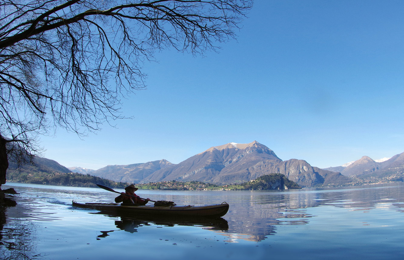 Lago di Varese in kayak - sullo sfondo il Monte Rosa